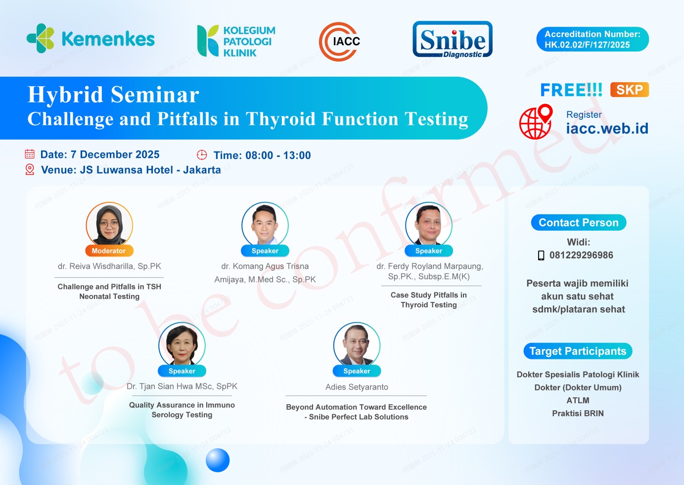 Please register via https://iacc.web.id/events/90/Hybrid-Seminar-Challenge-and-Pitfalss-in-Thyroid-Function-Testing.